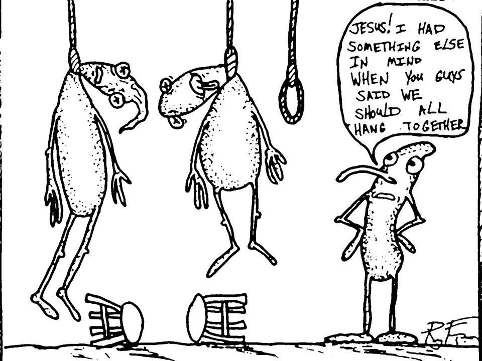I have a ton of stupid jokes constantly running through my head. They needed to be born as cartoons. I had no control over this. I was drawing them with a Sharpie and then uploading them to the internet. I am trying to get the hang of a Wacom tablet now and trying to move forward into the future. I’m not a computer guy, so this is difficult. I may still have to do a few more old-style before I get the hang of this mess. I wanted to compile all of my cartoons here in this post for you to see. Enjoy!